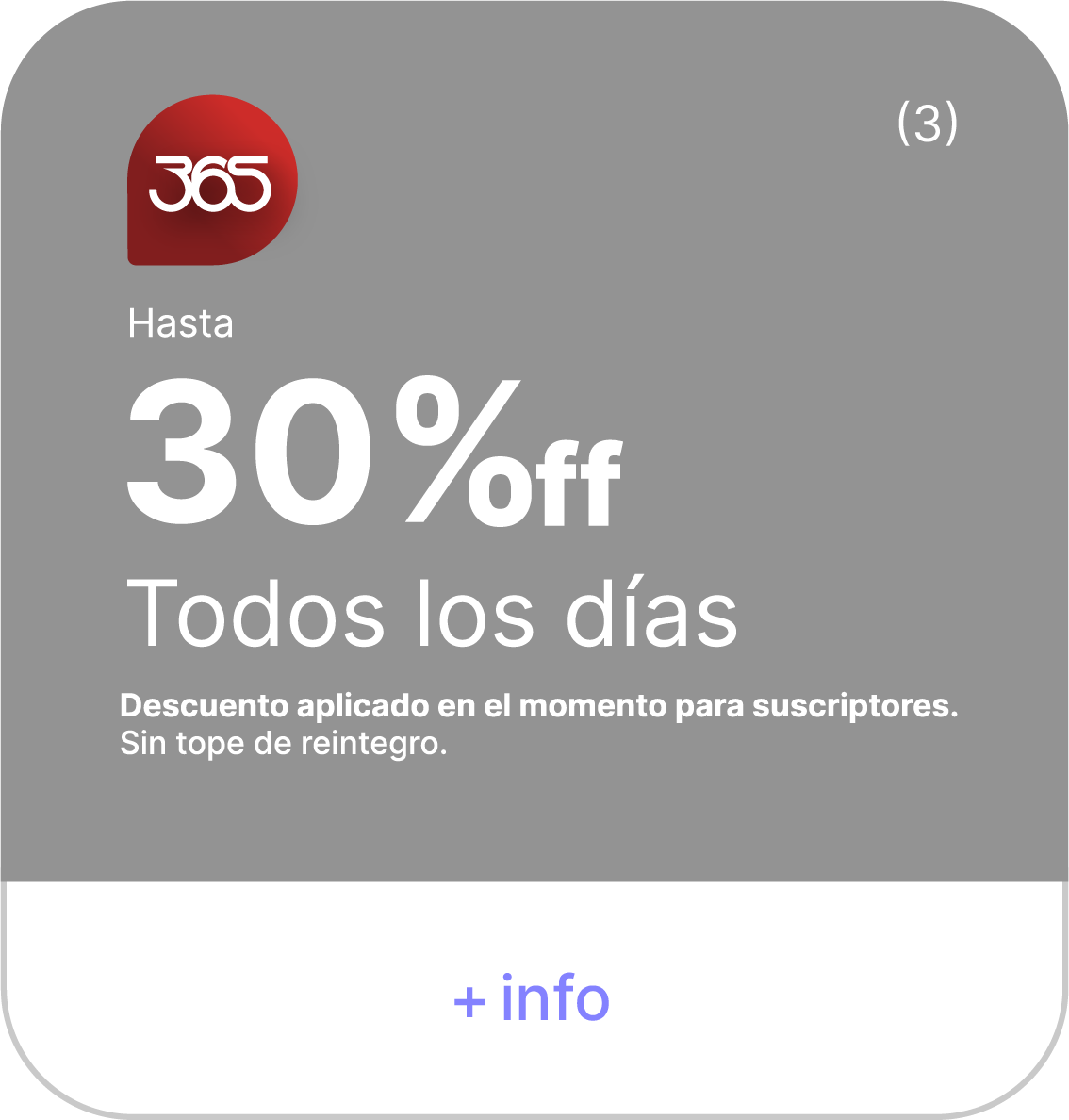 (3) PROMOCIÓN VÁLIDA EN LOS STANDS ADHERIDOS DE RE! OUTLET (AV. SARMIENTO 2704, CABA) DEL 17/10/2025 AL 30/10/2025. TODOS LOS CLIENTES QUE TENGAN DESCARGADA LA APLICACIÓN DE CLARIN 365 EN SUS DISPOSITIVOS MÓVILES Y/O ESTÉN ADHERIDOS AL CLUB DE BENFICIOS CLARIN 365 Y PRESENTEN SU CREDENCIAL EN LOS STANDS ADHERIDOS PODRÁN ACCEDER A DESCUENTOS DE HASTA UN 30% SOBRE EL MONTO TOTAL DE LA FACTURA, SEGÚN SE INDIQUE EN CADA STAND. CONSULTE EN CADA LOCAL/STAND ADHERIDO EL BENEFICIO AL QUE SE ENCUENTRA ADHERIDO O CONSÚLTELOS EN HTTPS://WWW.REOUTLET.COM.AR/. EL DESCUENTO APLICARÁ EN LÍNEA DE CAJA. DESCUENTOS VÁLIDOS CON TODOS LOS MEDIOS DE PAGO CON LOS QUE HABITUALMENTE OPERA CADA LOCAL/STAND ADHERIDO. NO ACUMULABLE CON OTRAS PROMOCIONES Y/O DESCUENTOS VIGENTES. PARA MÁS INFORMACIÓN CONSULTAR EN WWW.365.COM.AR/REGLAMENTO O AL 0810.333.0365. ARTE GRÁFICO EDITORIAL ARGENTINO S.A. CUIT 30-50012415-2. PIEDRAS 1743, CP 1140, CABA.